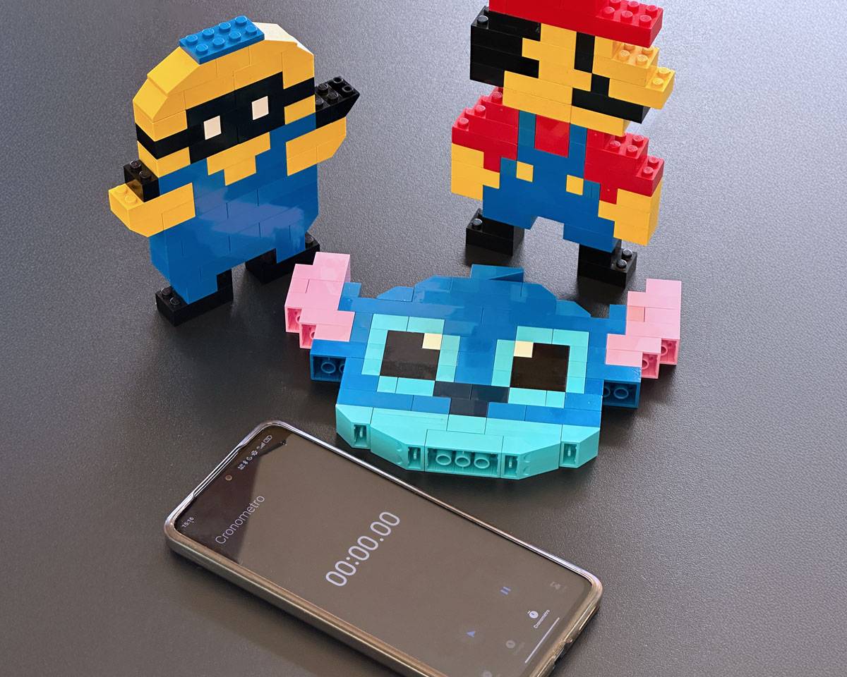 Prova a ricostruire i personaggi Stitch, Super Mario e i Minions più veloce che puoi e fai registrare il tuo tempo record.