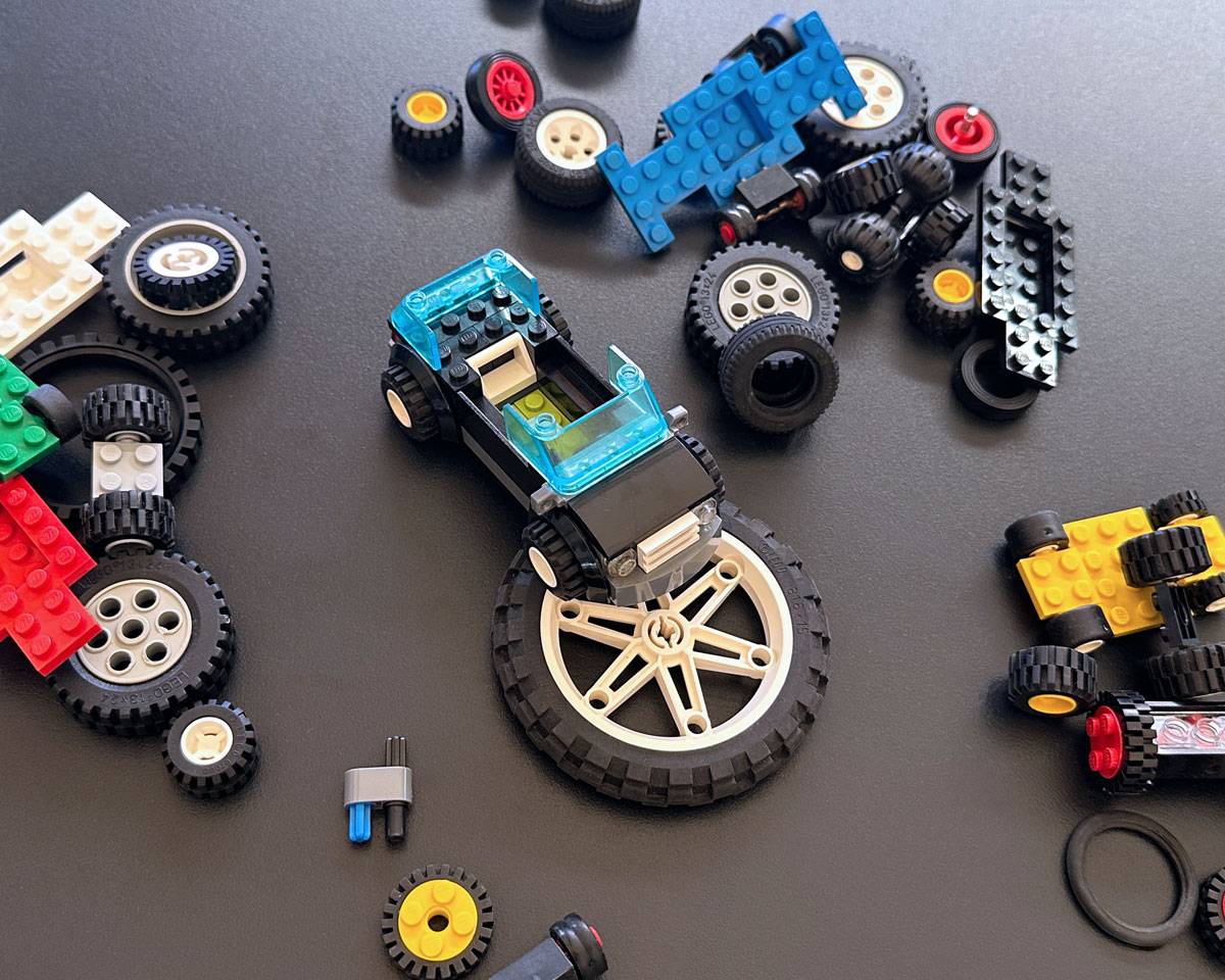 Crea la tua auto con i mattoncini, mettila alla prova sulla rampa di lancio e scopri fin dove riesce ad arrivare!