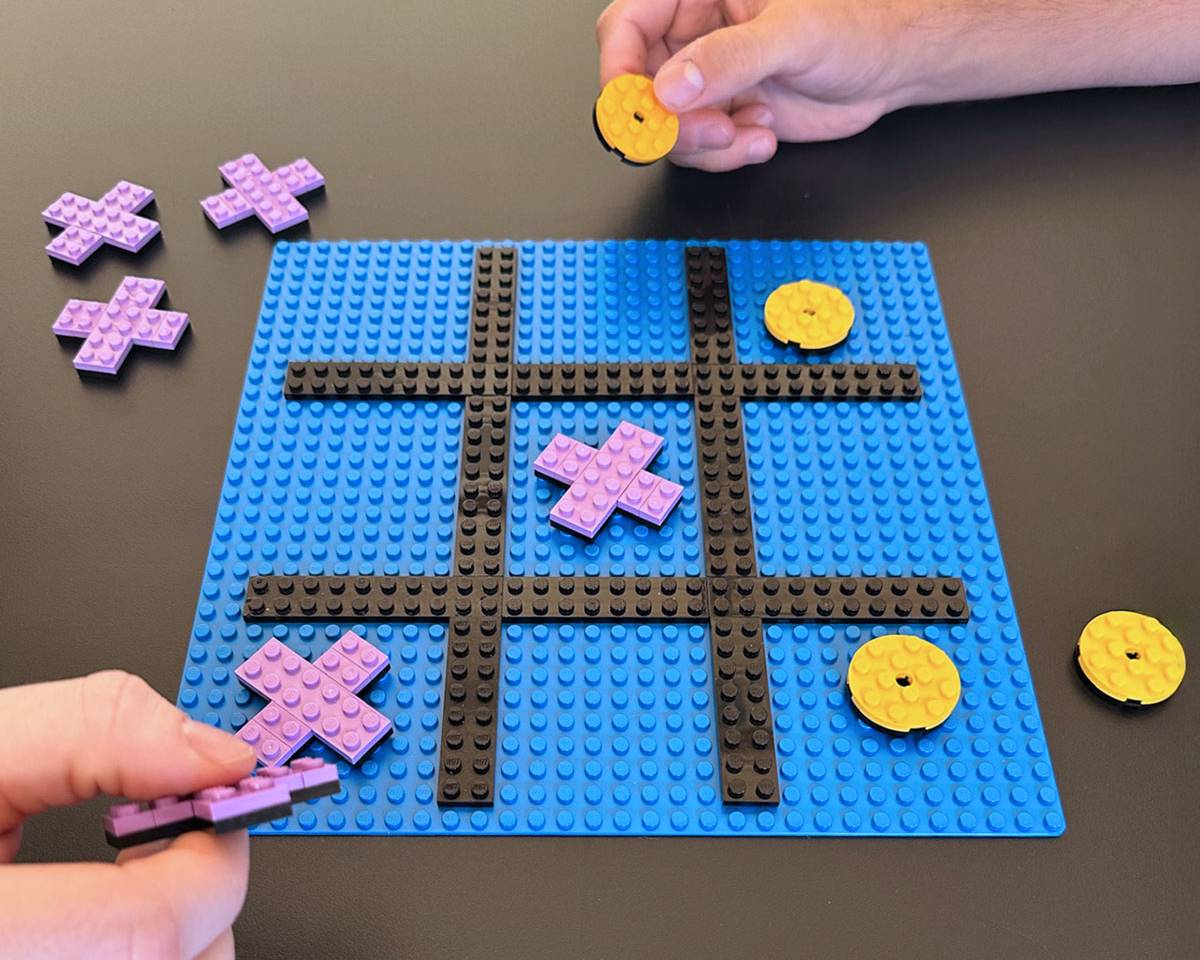 Il classico gioco del tris, rivisitato con basi e mattoncini.